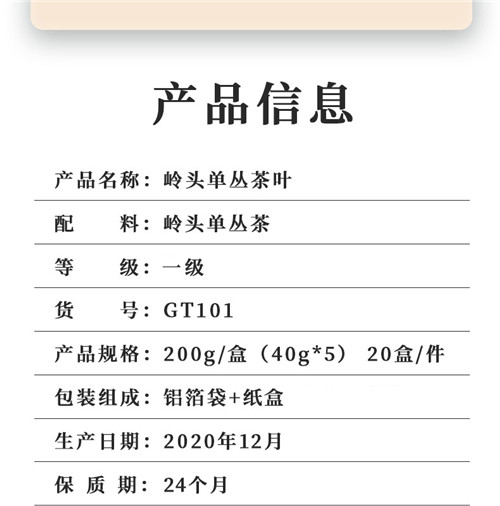 中茶 GT101岭头单丛茶 潮州单丛茶 200克/盒