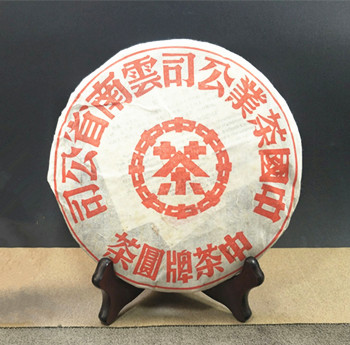 2006年云南七子饼大红印中茶牌圆茶陈年干仓老普洱357克青饼 生茶