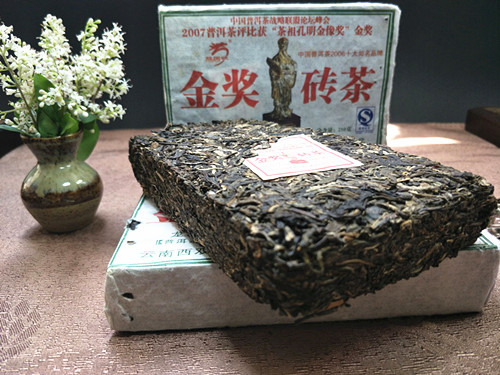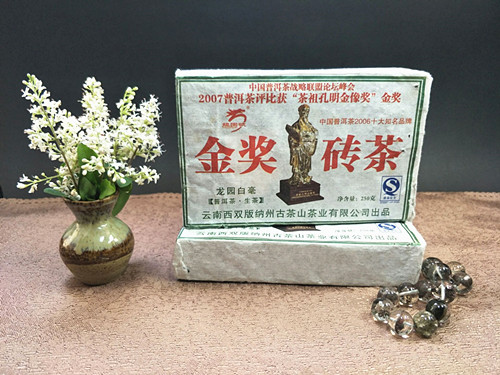 云南普洱茶 2007年龙园号 龙园白毫 金奖砖茶 250克陈年青砖 生茶