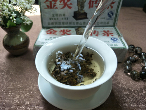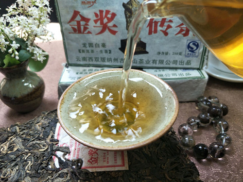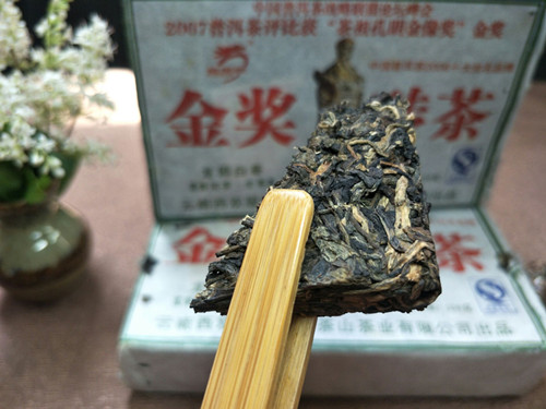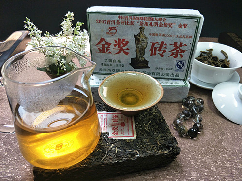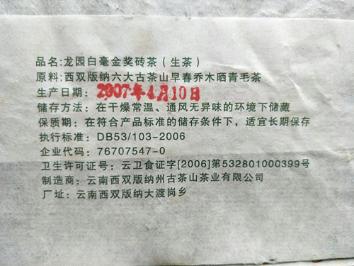 【产品特点】白毫砖茶选自西双版纳六大古茶山早春乔木芽尖为主料,精心制作而成,外形自然、松紧适度、条索清晰,白毫显见,此茶冲泡后汤色透黄,茶气和香气很足,回甘生津比较快,丝滑柔顺,回甘持久,是一款品饮和收藏的难得的好茶。刚上市不久就在中国普洱茶战略联盟论坛峰会上获得茶祖孔明金像奖,品质勿庸质疑!是收藏品饮之上品!