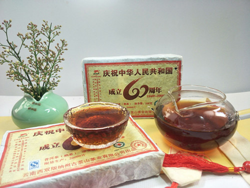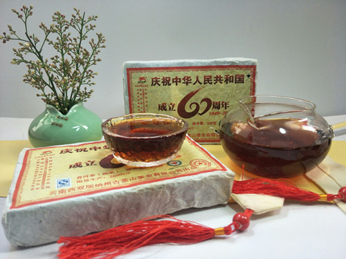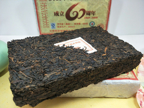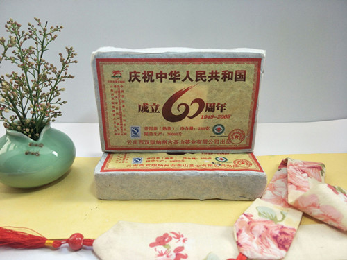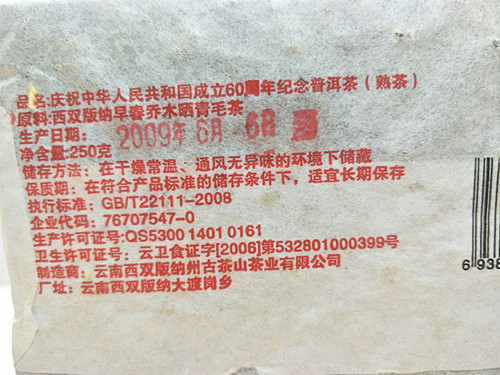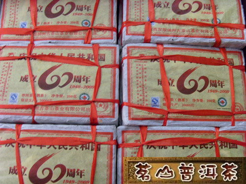 2009年龙园号 庆祝共和国成立60周年纪念熟砖 250克陈年普洱 熟茶