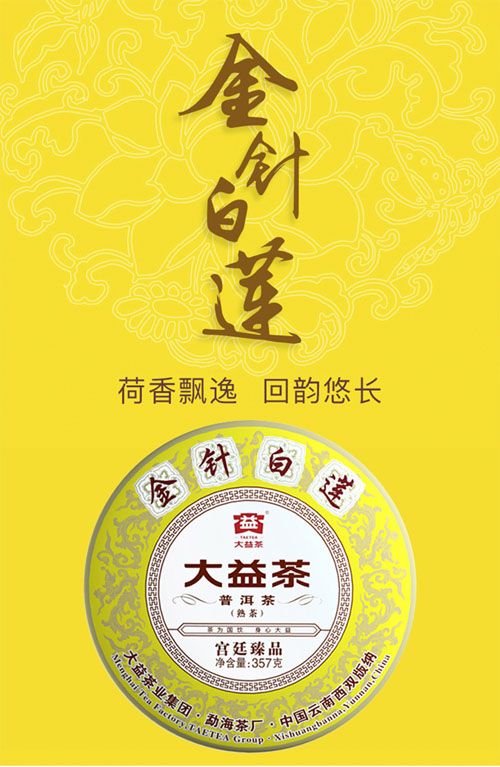 2021年大益金针白莲普洱熟茶大益勐海茶厂357g/片 2101批次