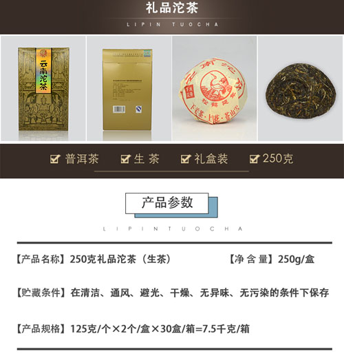 下关沱茶 2007年 礼品沱 云南沱茶 生茶 250克(125*2)