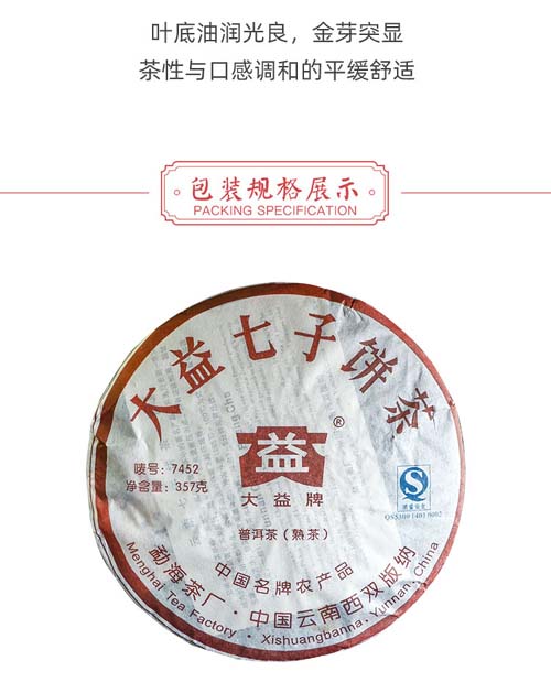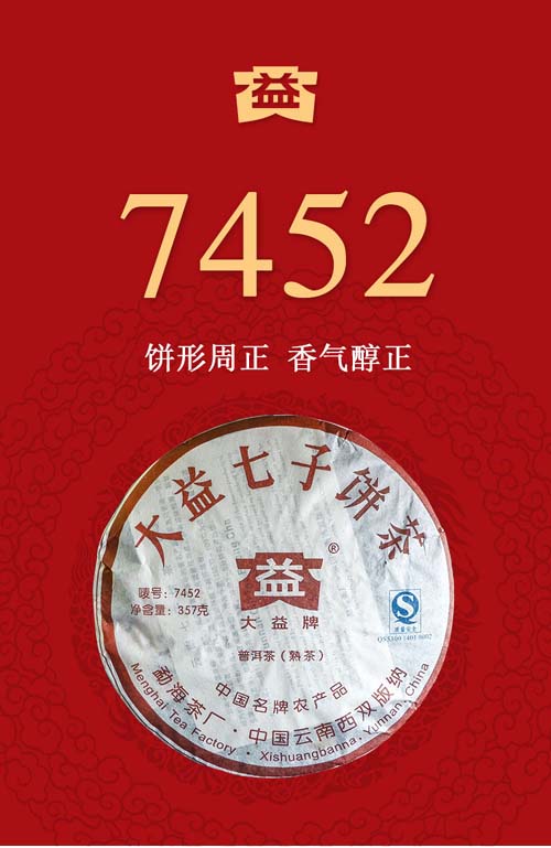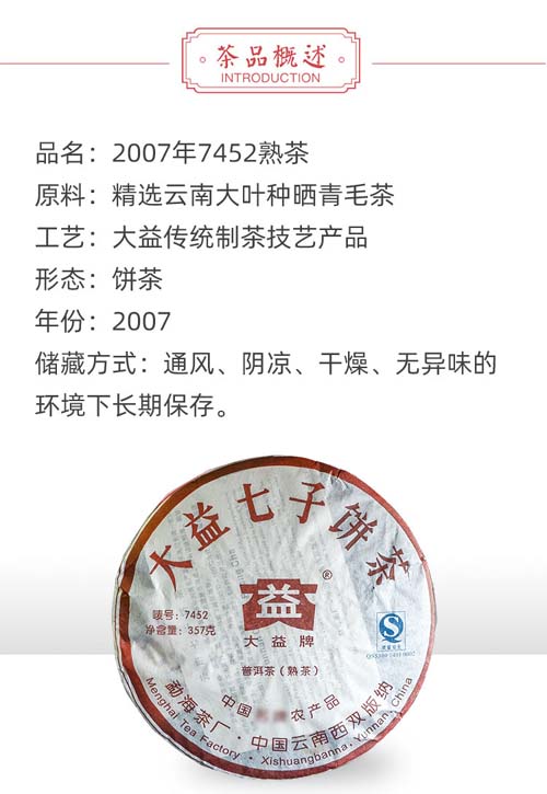 陈化大益7452熟茶702批勐海茶厂普洱茶2007年七子饼茶357克