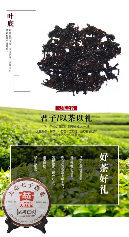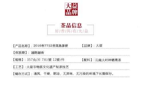 大益普洱茶7752熟茶云南七子饼茶2016年1601批次357g勐海茶厂茶叶