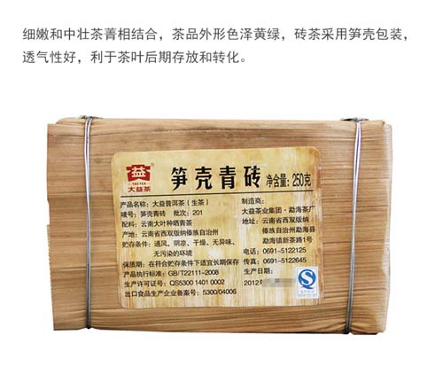 大益 笋壳青砖 普洱茶 生茶2012 砖茶 201批 勐海茶厂 茶砖